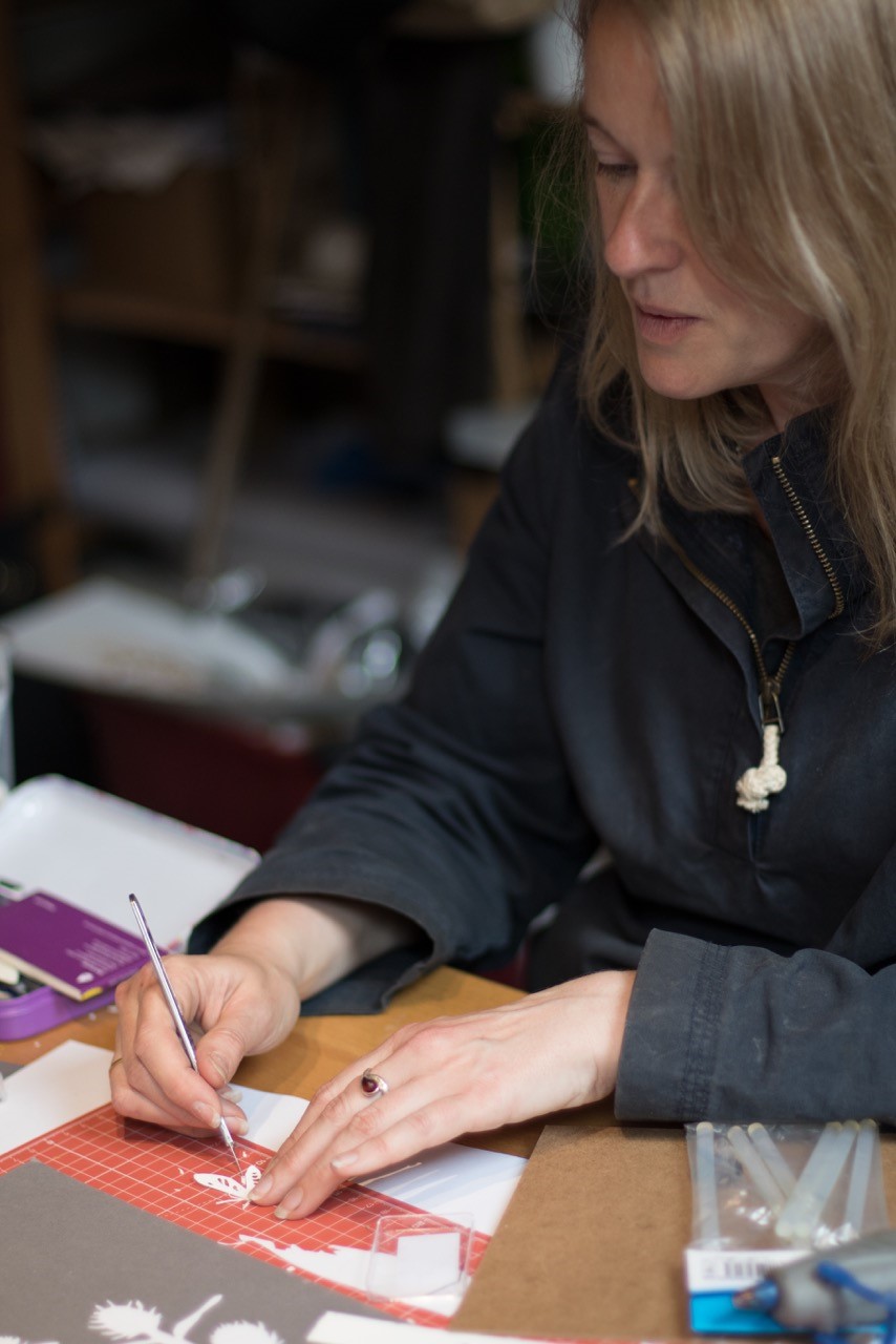 My working life is very varied. I undertake residencies and gallery work, making large-scale pieces and installations. The largest papercut I have done so far was three metres long and took a month to plan and complete, being entirely cut by hand. I also work to commission, incorporating my clients’ favourite pieces of text in hand cut and painted pieces, often commissioned to commemorate special occasions. I run workshops and courses on papercutting and artist’s books as well as occasionally working as a tutor at colleges and other venues. I also design and make smaller more commercial work for sale, via www.madebyhandonline.com and through galleries and gallery shops.